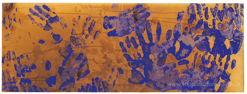 Ti offriamo una riproduzione artigianale su tela dell'opera famosa 'Senza titolo Pittura di colore del fuoco' di Yves Klein, dal Museo delle Riproduzioni.