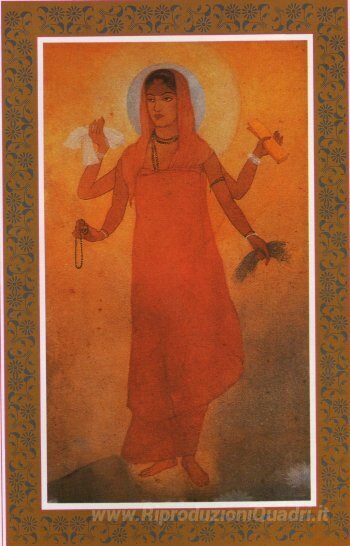 Ti offriamo una riproduzione artigianale su tela dell'opera famosa 'Bharat Mata (Mother India)' di Abanindranath Tagore, dal Museo delle Riproduzioni.