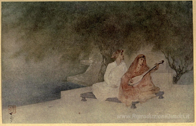 Ti offriamo una riproduzione artigianale su tela dell'opera famosa 'Nishat' di Abanindranath Tagore, dal Museo delle Riproduzioni.