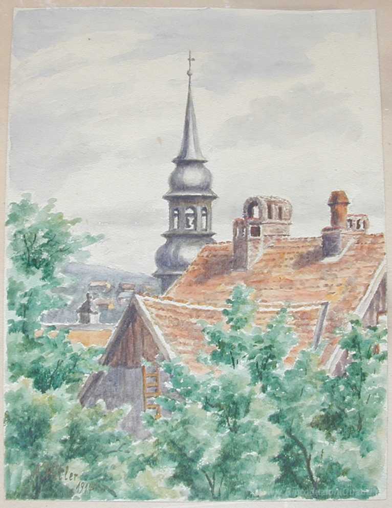 Ti offriamo una riproduzione artigianale su tela dell'opera famosa 'La Chiesa del paese' di Adolf Hitler, dal Museo delle Riproduzioni.