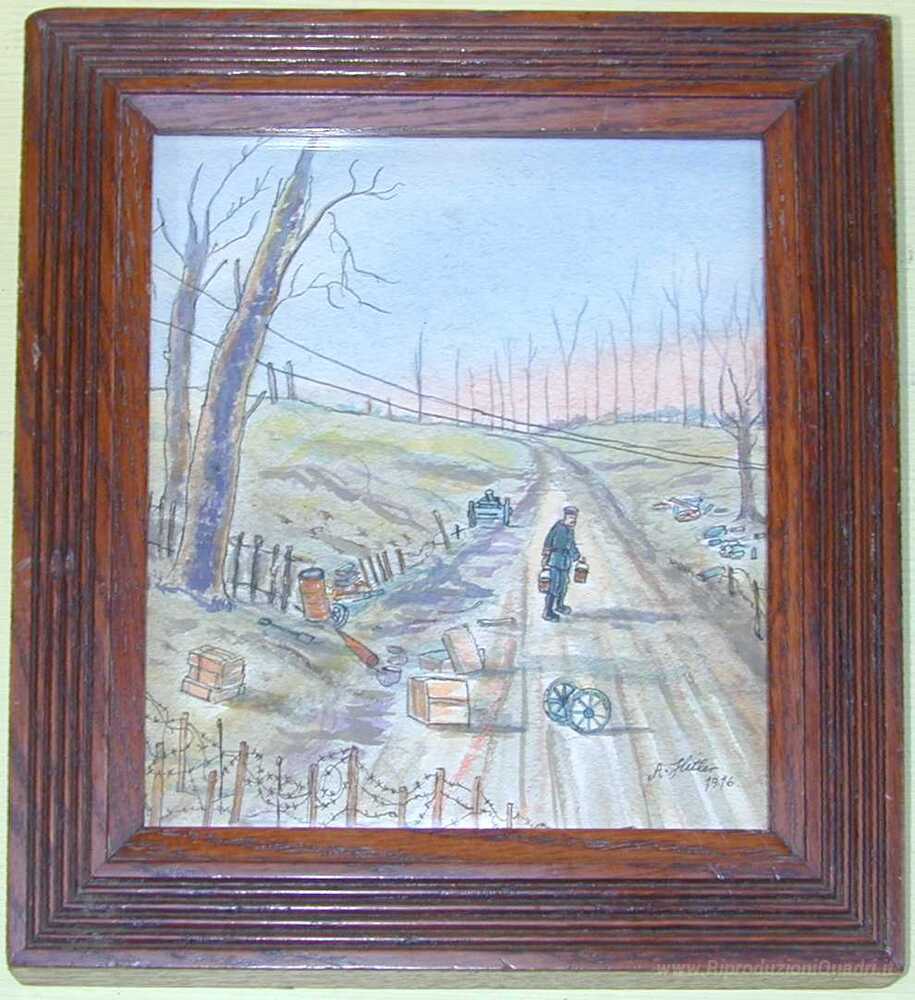 Ti offriamo una riproduzione artigianale su tela dell'opera famosa 'Road to Terra di Nessuno' di Adolf Hitler, dal Museo delle Riproduzioni.