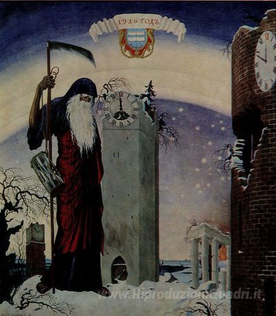 Ti offriamo una riproduzione artigianale su tela dell'opera famosa 'Allegoria del 1916 (Chronos)' di Heorhiy Narbut, dal Museo delle Riproduzioni.