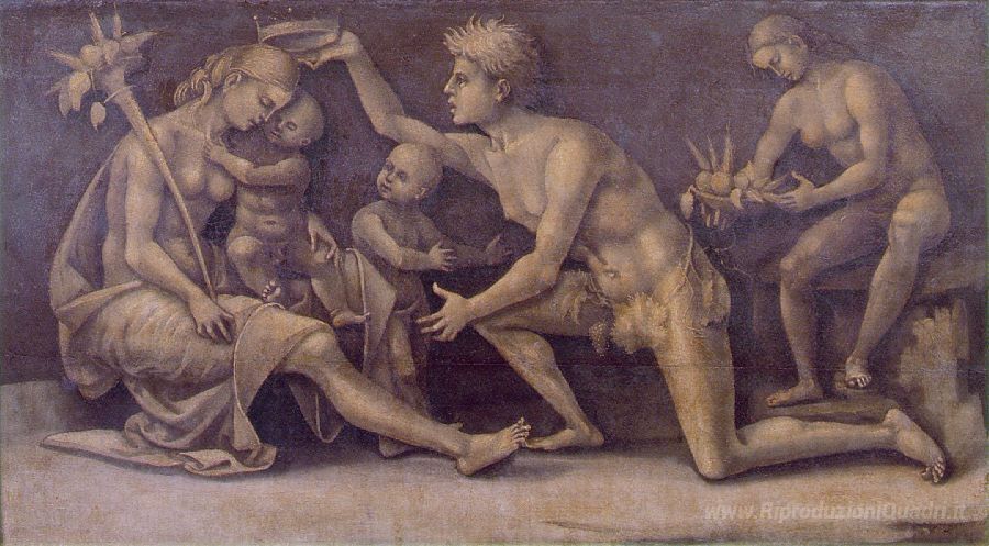 Ti offriamo una riproduzione artigianale su tela dell'opera famosa 'Allegoria della Fecondità e Abbondanza' di Luca Signorelli, dal Museo delle Riproduzioni.