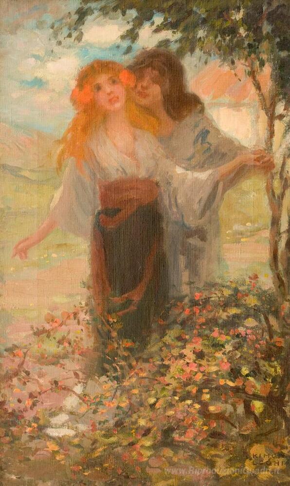 Ti offriamo una riproduzione artigianale su tela dell'opera famosa 'Allegoria della Primavera' di Kimon Loghi, dal Museo delle Riproduzioni.