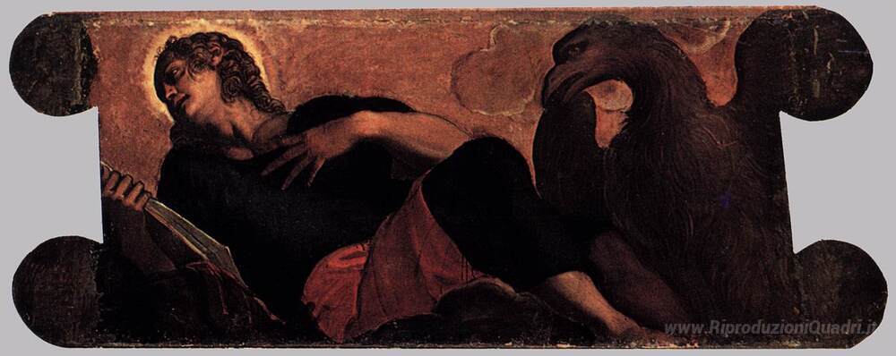 Ti offriamo una riproduzione artigianale su tela dell'opera famosa 'Allegoria della Scuola di San Giovanni Evangelista' di Tintoretto, dal Museo delle Riproduzioni.