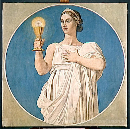 Ti offriamo una riproduzione artigianale su tela dell'opera famosa 'Cartone per le finestre della cappella di San Ferdinando: Faith' di Jean Auguste Dominique Ingres, dal Museo delle Riproduzioni.