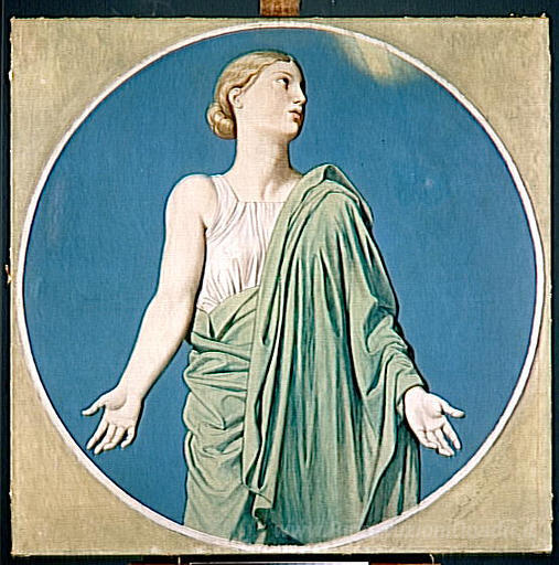 Ti offriamo una riproduzione artigianale su tela dell'opera famosa 'Cartone per le finestre della cappella di San Ferdinando: Speran' di Jean Auguste Dominique Ingres, dal Museo delle Riproduzioni.