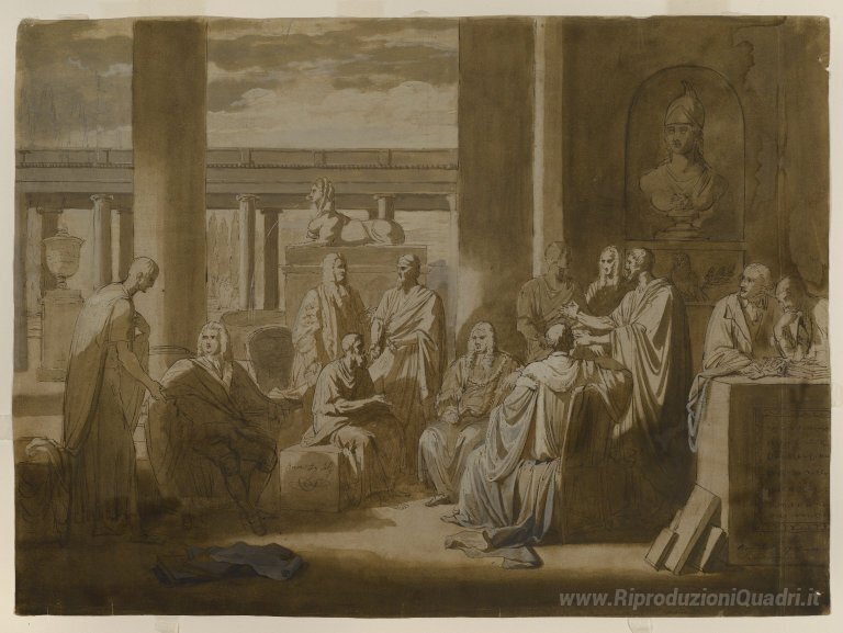 Ti offriamo una riproduzione artigianale su tela dell'opera famosa 'Conosci te stesso' di Benjamin West, dal Museo delle Riproduzioni.