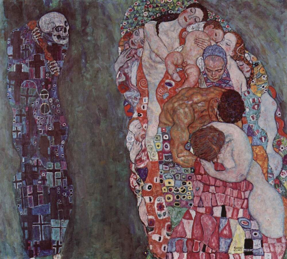 Ti offriamo una riproduzione artigianale su tela dell'opera famosa 'Death and Life' di Gustav Klimt, dal Museo delle Riproduzioni.