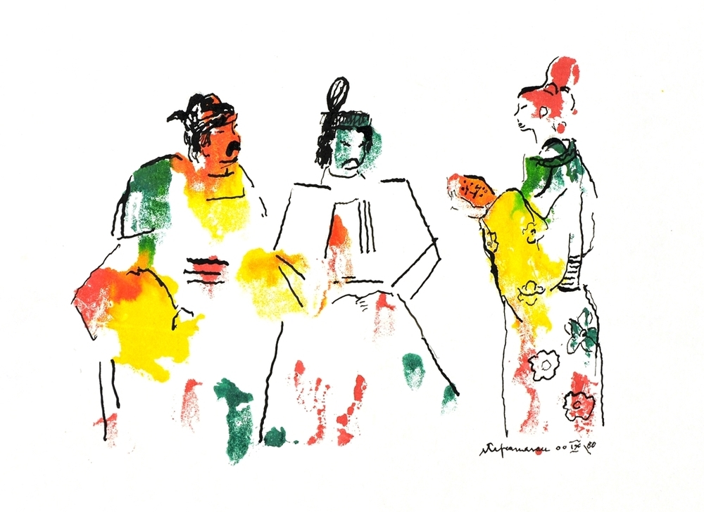 Ti offriamo una riproduzione artigianale su tela dell'opera famosa 'Dialogo' di George Stefanescu-Ramnic , dal Museo delle Riproduzioni.