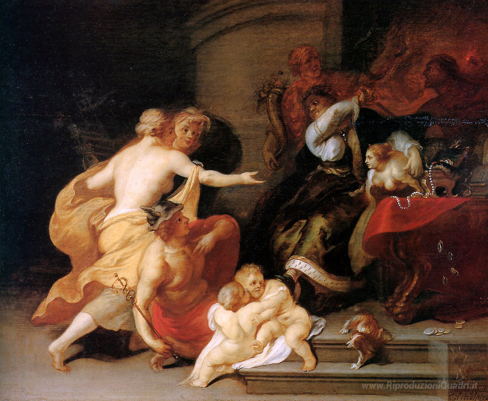 Ti offriamo una riproduzione artigianale su tela dell'opera famosa 'Discordia Espelle Arte e Scienza' di Theodoor van Thulden, dal Museo delle Riproduzioni.