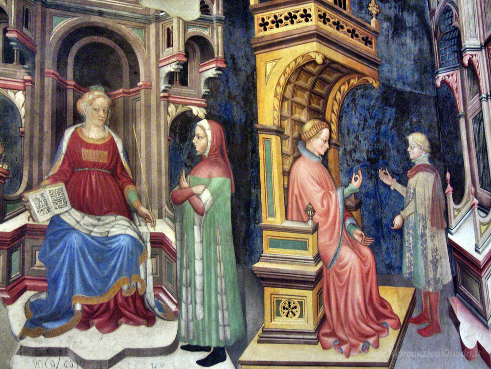 Ti offriamo una riproduzione artigianale su tela dell'opera famosa 'Filosofia e grammatica' di Gentile da Fabriano, dal Museo delle Riproduzioni.