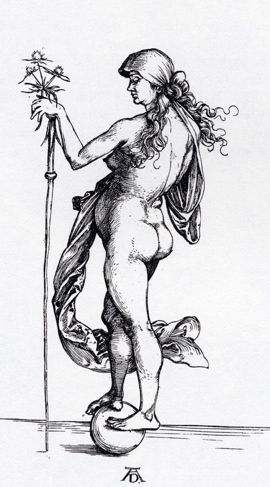 Ti offriamo una riproduzione artigianale su tela dell'opera famosa 'Fortuna' di Albrecht Durer, dal Museo delle Riproduzioni.