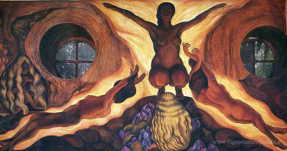 Ti offriamo una riproduzione artigianale su tela dell'opera famosa 'Forze sotterranee' di Diego Rivera, dal Museo delle Riproduzioni.
