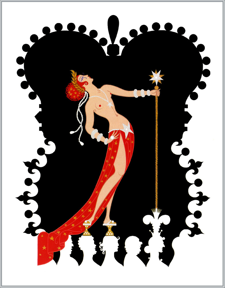 Ti offriamo una riproduzione artigianale su tela dell'opera famosa 'I sette peccati capitali, Orgoglio' di Erte, dal Museo delle Riproduzioni.