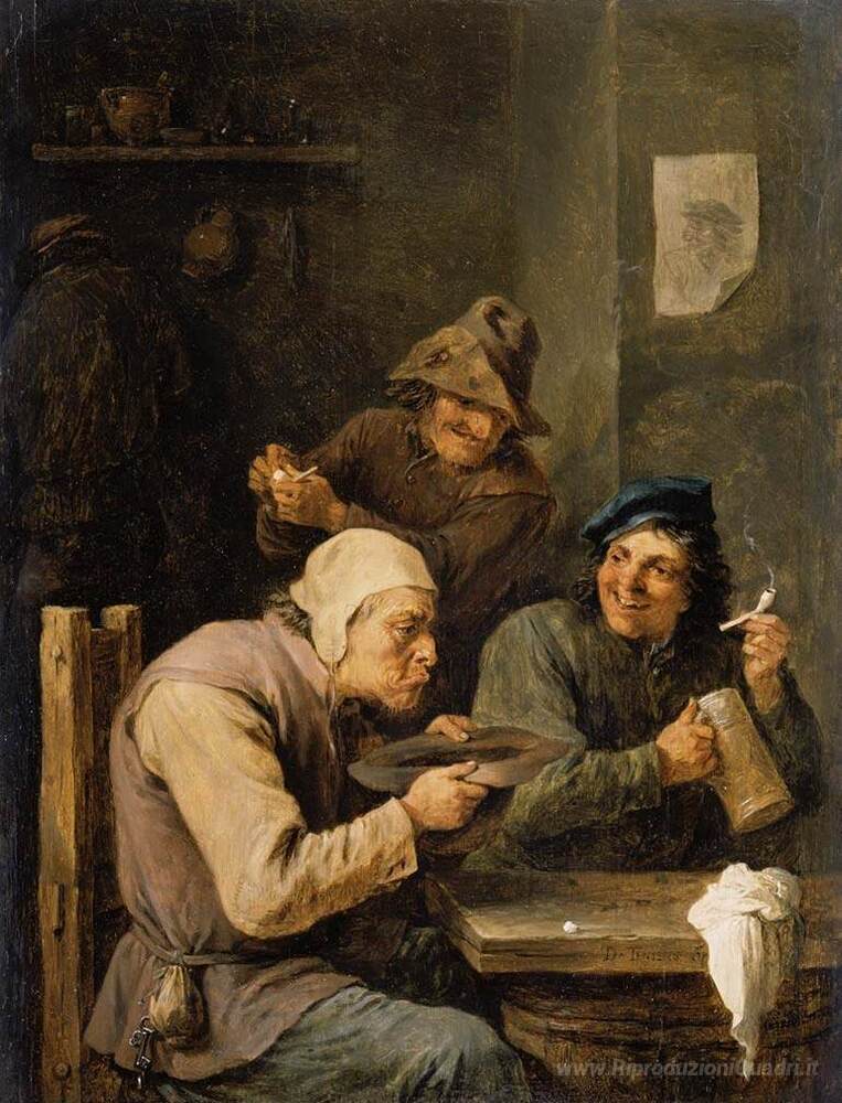 Ti offriamo una riproduzione artigianale su tela dell'opera famosa 'Il Cap Hustle' di David Teniers the Younger, dal Museo delle Riproduzioni.
