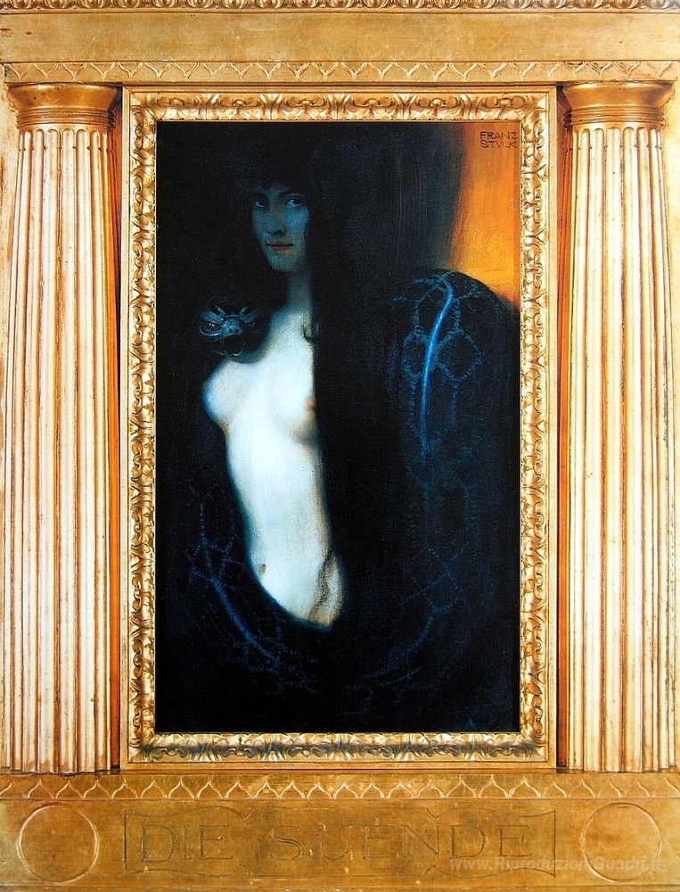 Ti offriamo una riproduzione artigianale su tela dell'opera famosa 'Il peccato' di Franz Stuck, dal Museo delle Riproduzioni.