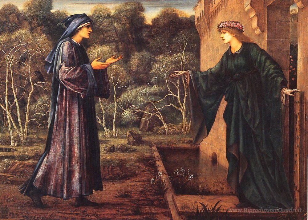 Ti offriamo una riproduzione artigianale su tela dell'opera famosa 'Il pellegrino alla Porta di ozio' di Edward Burne-Jones, dal Museo delle Riproduzioni.