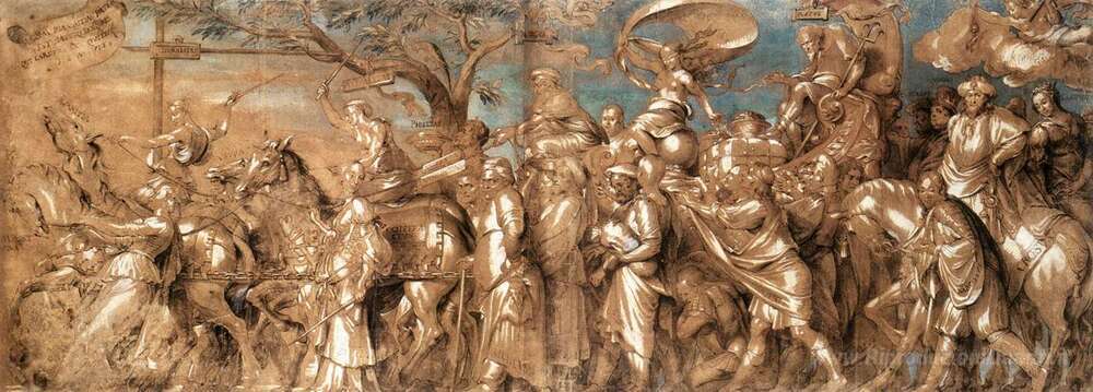 Ti offriamo una riproduzione artigianale su tela dell'opera famosa 'Il trionfo di Riches' di Hans Holbein the Younger, dal Museo delle Riproduzioni.