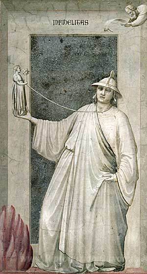 Ti offriamo una riproduzione artigianale su tela dell'opera famosa 'Infedeltà' di Giotto, dal Museo delle Riproduzioni.