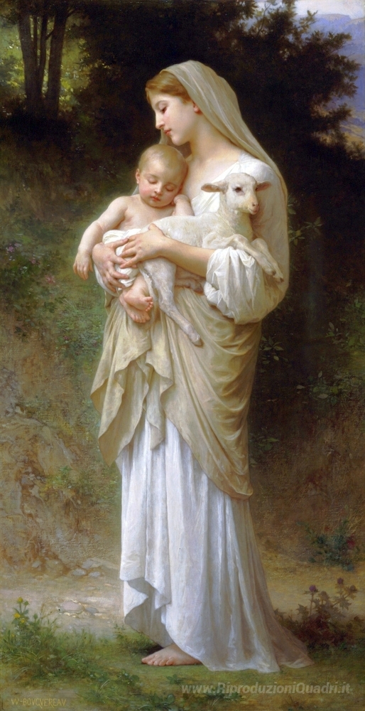 Ti offriamo una riproduzione artigianale su tela dell'opera famosa 'Innocenza' di William-Adolphe Bouguereau, dal Museo delle Riproduzioni.