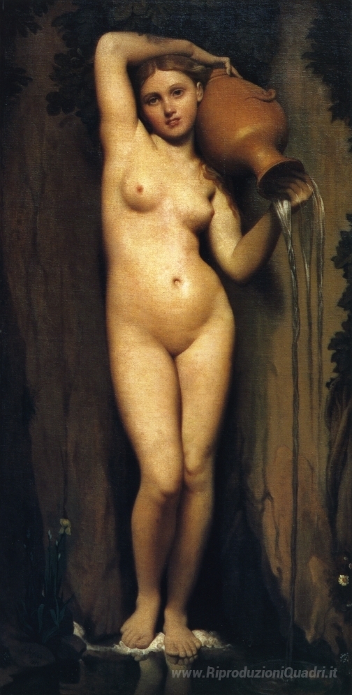 Ti offriamo una riproduzione artigianale su tela dell'opera famosa 'La fonte' di Jean Auguste Dominique Ingres, dal Museo delle Riproduzioni.