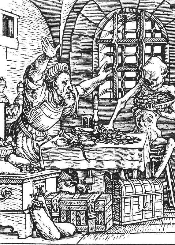 Ti offriamo una riproduzione artigianale su tela dell'opera famosa 'La morte e la Avaro, da The Dance of Death' di Hans Holbein the Younger, dal Museo delle Riproduzioni.