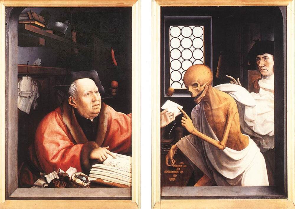 Ti offriamo una riproduzione artigianale su tela dell'opera famosa 'La morte e la Avaro' di Jan Provoost, dal Museo delle Riproduzioni.