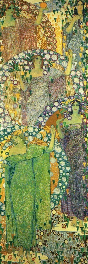 Ti offriamo una riproduzione artigianale su tela dell'opera famosa 'La primavera Che perennemente si rinnova (dettaglio)' di Galileo Chini, dal Museo delle Riproduzioni.