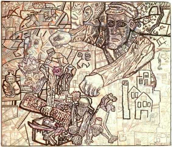 Ti offriamo una riproduzione artigianale su tela dell'opera famosa 'La rivoluzione di febbraio' di Pavel Filonov, dal Museo delle Riproduzioni.