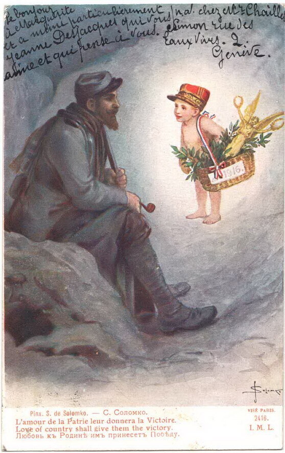 Ti offriamo una riproduzione artigianale su tela dell'opera famosa 'L'amore della patria deve dare loro la vittoria' di Sergey Solomko, dal Museo delle Riproduzioni.
