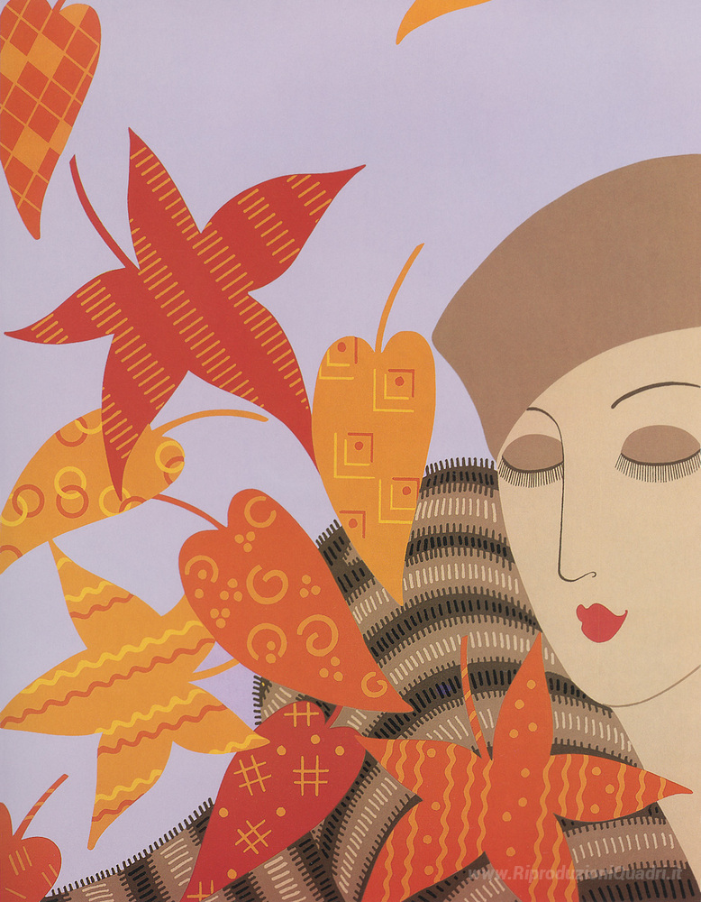 Ti offriamo una riproduzione artigianale su tela dell'opera famosa 'Le Stagioni, Autunno' di Erte, dal Museo delle Riproduzioni.