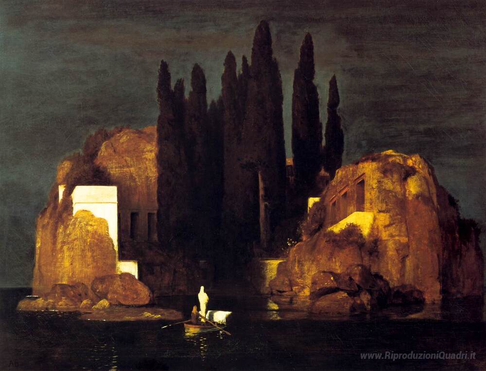 Ti offriamo una riproduzione artigianale su tela dell'opera famosa 'L'Isola dei Morti' di Arnold Böcklin, dal Museo delle Riproduzioni.
