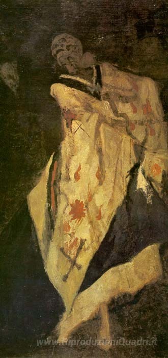 Ti offriamo una riproduzione artigianale su tela dell'opera famosa 'Morte al Ballo' di Felicien Rops, dal Museo delle Riproduzioni.