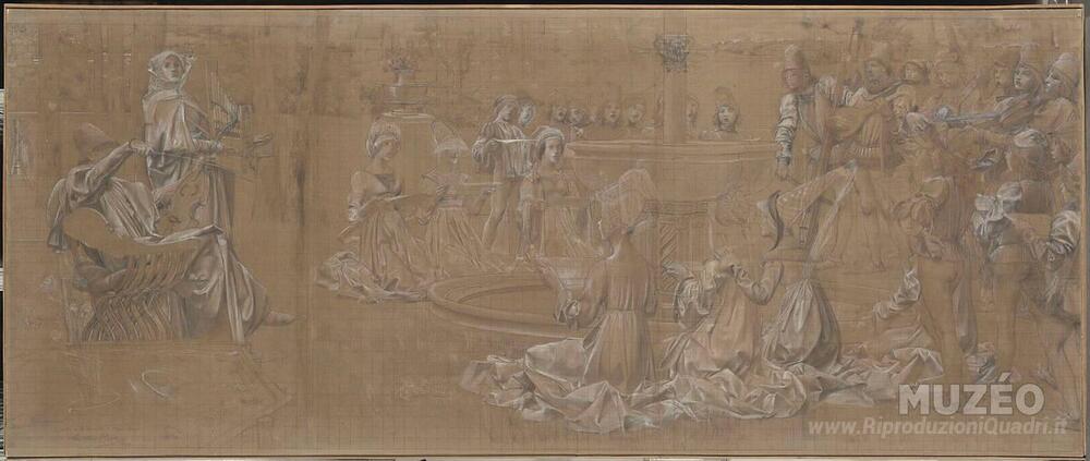 Ti offriamo una riproduzione artigianale su tela dell'opera famosa 'Musica' di Luc-Olivier Merson, dal Museo delle Riproduzioni.