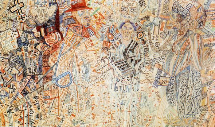 Ti offriamo una riproduzione artigianale su tela dell'opera famosa 'Politica Coloniale' di Pavel Filonov, dal Museo delle Riproduzioni.