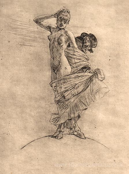 Ti offriamo una riproduzione artigianale su tela dell'opera famosa 'Prostituzione e follia dominare il mondo' di Felicien Rops, dal Museo delle Riproduzioni.