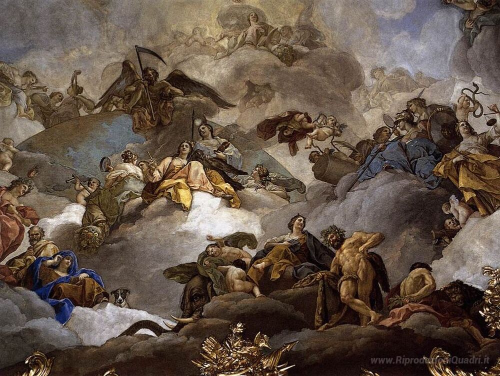 Ti offriamo una riproduzione artigianale su tela dell'opera famosa 'Provvidenza che presiede la Virtù e Facoltà di Man (particolare ' di Francisco Bayeu y Subias, dal Museo delle Riproduzioni.