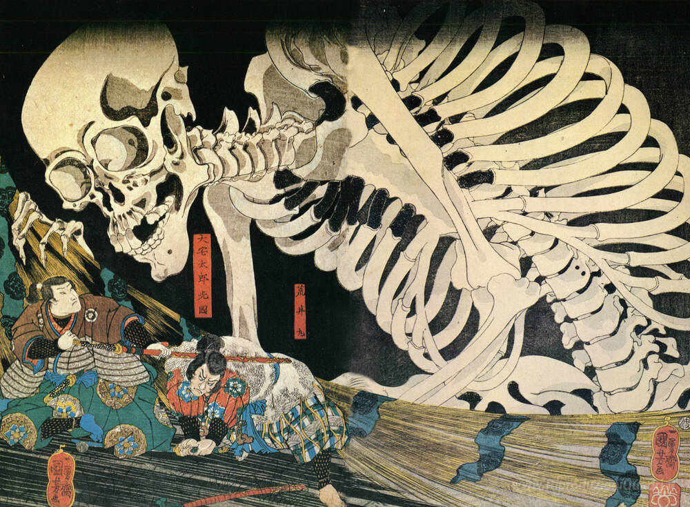 Ti offriamo una riproduzione artigianale su tela dell'opera famosa 'Sceleton' di Utagawa Kuniyoshi, dal Museo delle Riproduzioni.