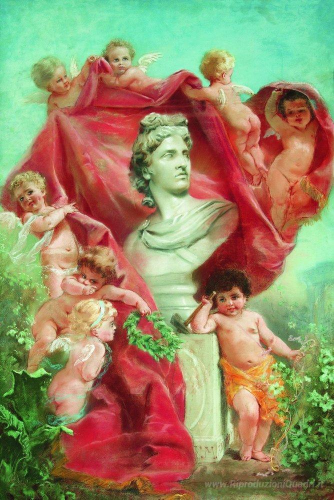 Scopri l'incanto dell'arte classica con l'opera Scultura di Konstantin Makovsky, un maestro della pittura a olio del XIX secolo. Originario di Russia, Makovsky è noto per la sua abilità straordinaria nel catturare la bellezza e l'eleganza dei soggetti, combinando influenze accademiche con un tocco personale. Questa composizione, ricca di dettagli e colori vibranti, invita lo spettatore a immergersi in un mondo di raffinatezza e grazia.