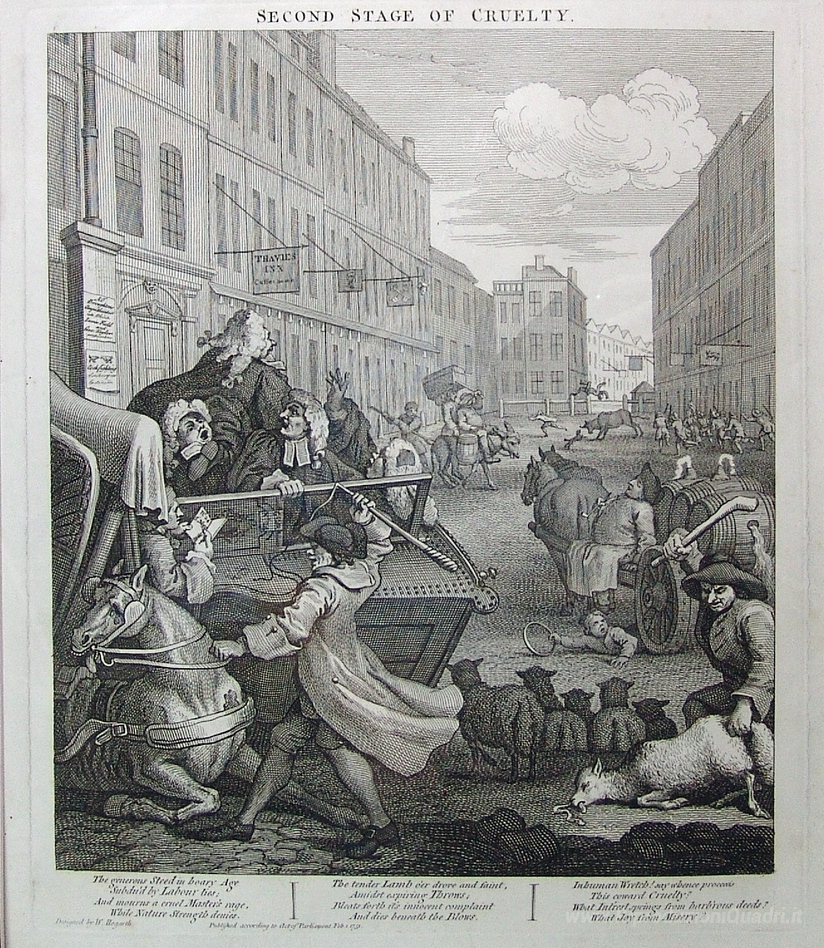 Ti offriamo una riproduzione artigianale su tela dell'opera famosa 'Seconda tappa della crudeltà' di William Hogarth, dal Museo delle Riproduzioni.