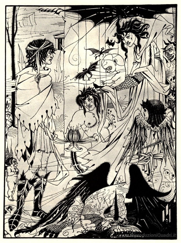 Ti offriamo una riproduzione artigianale su tela dell'opera famosa 'Sogni' di Aubrey Beardsley, dal Museo delle Riproduzioni.