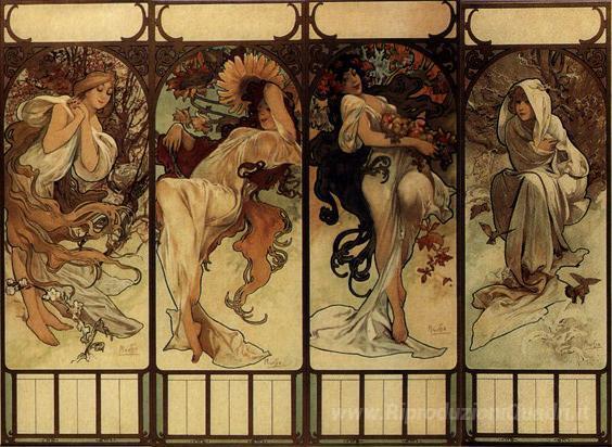Ti offriamo una riproduzione artigianale su tela dell'opera famosa 'Stagione' di Alphonse Mucha, dal Museo delle Riproduzioni.