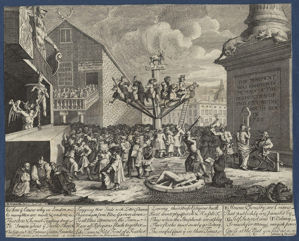 Ti offriamo una riproduzione artigianale su tela dell'opera famosa 'Stampa emblematico del programma Mare del Sud' di William Hogarth, dal Museo delle Riproduzioni.