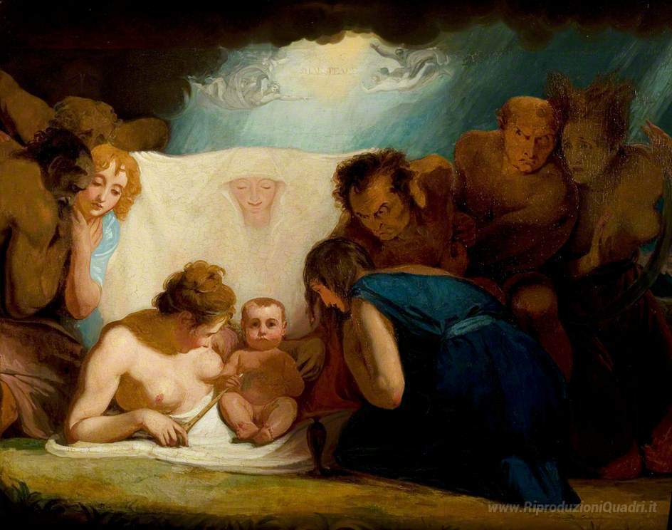 Ti offriamo una riproduzione artigianale su tela dell'opera famosa 'The Shakespeare Infant Frequentato da Natura e passioni' di George Romney, dal Museo delle Riproduzioni.