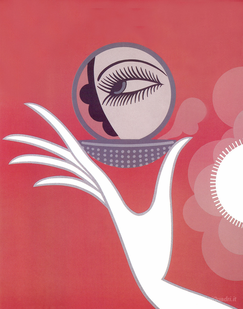 Ti offriamo una riproduzione artigianale su tela dell'opera famosa 'Vanità compatti' di Erte, dal Museo delle Riproduzioni.