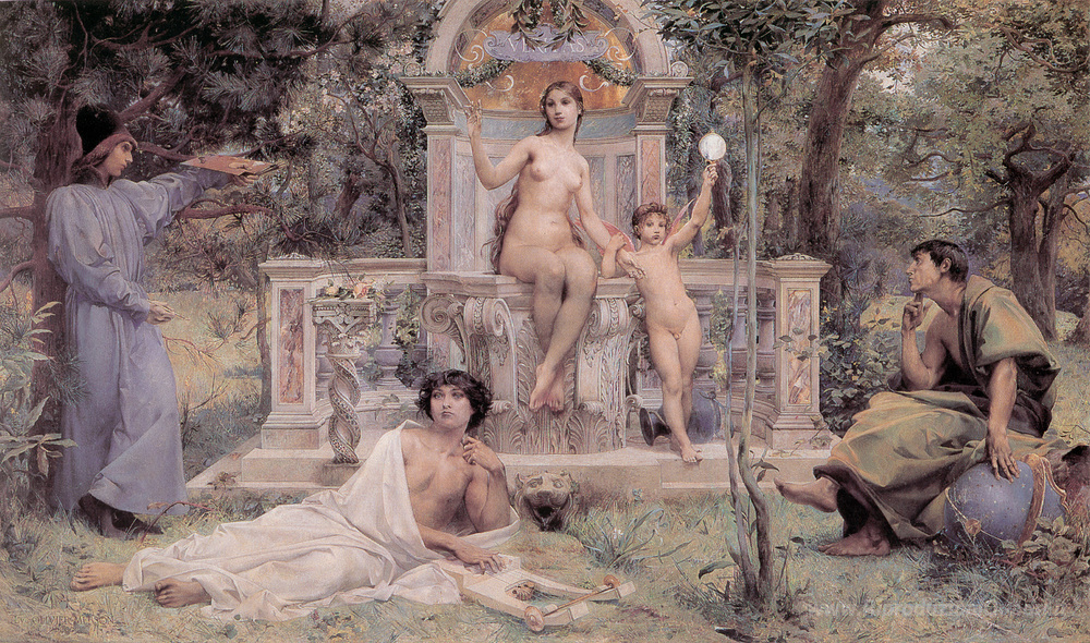 Benvenuti nella nostra selezione esclusiva di dipinti a olio italiani, dove ogni opera racconta una storia e incarna la passione degli artisti che le hanno create. Oggi vi presentiamo Verità, un capolavoro di Luc-Olivier Merson, artista rinomato per il suo talento nel combinare realismo e idealizzazione. Merson, attivo nel XIX secolo, ha saputo catturare l'essenza dell'umanità attraverso una tecnica brillante, arricchita da una sapiente scelta di colori e luci che rendono ogni sua opera unica e affascinante.