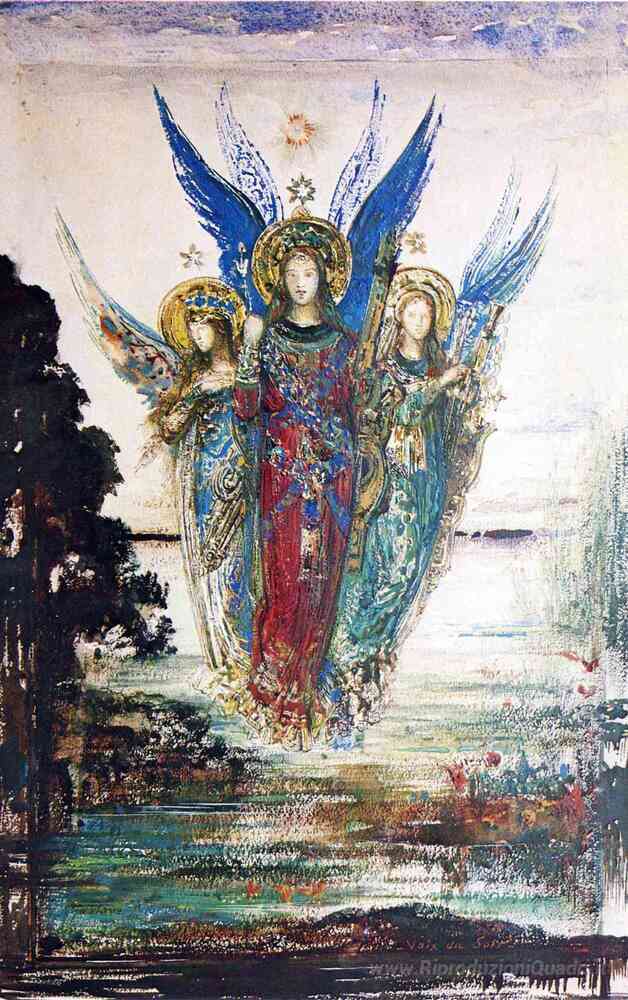 Ti offriamo una riproduzione artigianale su tela dell'opera famosa 'Voci di sera' di Gustave Moreau, dal Museo delle Riproduzioni.