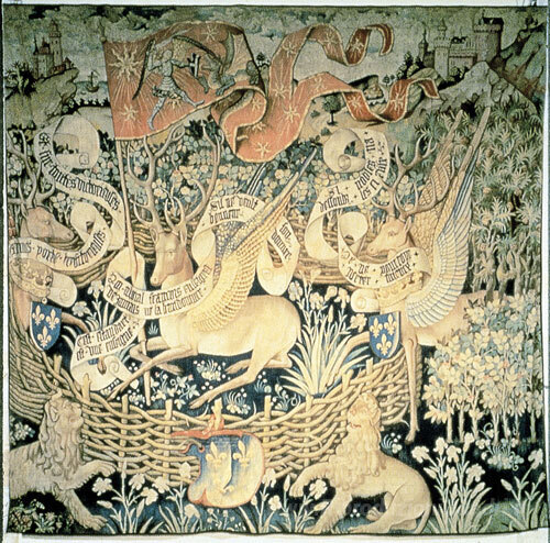 Ti offriamo una riproduzione artigianale su tela dell'opera famosa 'Arazzo dei cervi alati' di Jean Fouquet, dal Museo delle Riproduzioni.