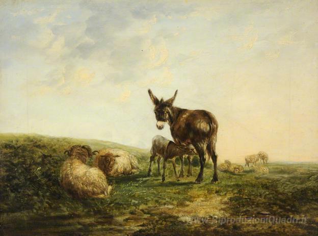 Ti offriamo una riproduzione artigianale su tela dell'opera famosa 'Asino e pecore' di William Shayer, dal Museo delle Riproduzioni.